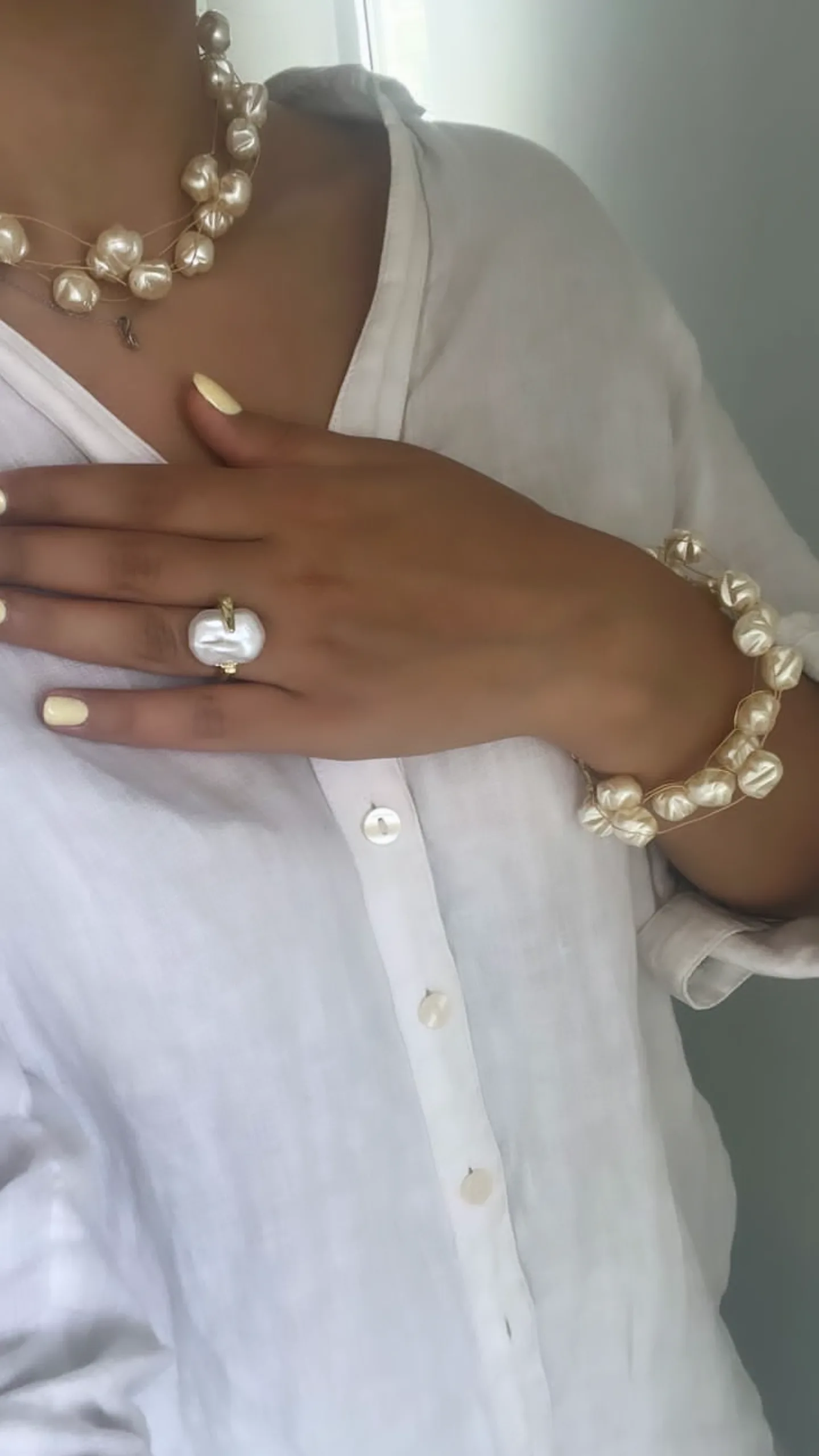ست گردنبند و دستبند مدل سنگی و مرواریدی