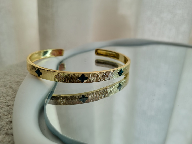 طرح ظریف و شبگونه روی زمینه ای از طلای مات.