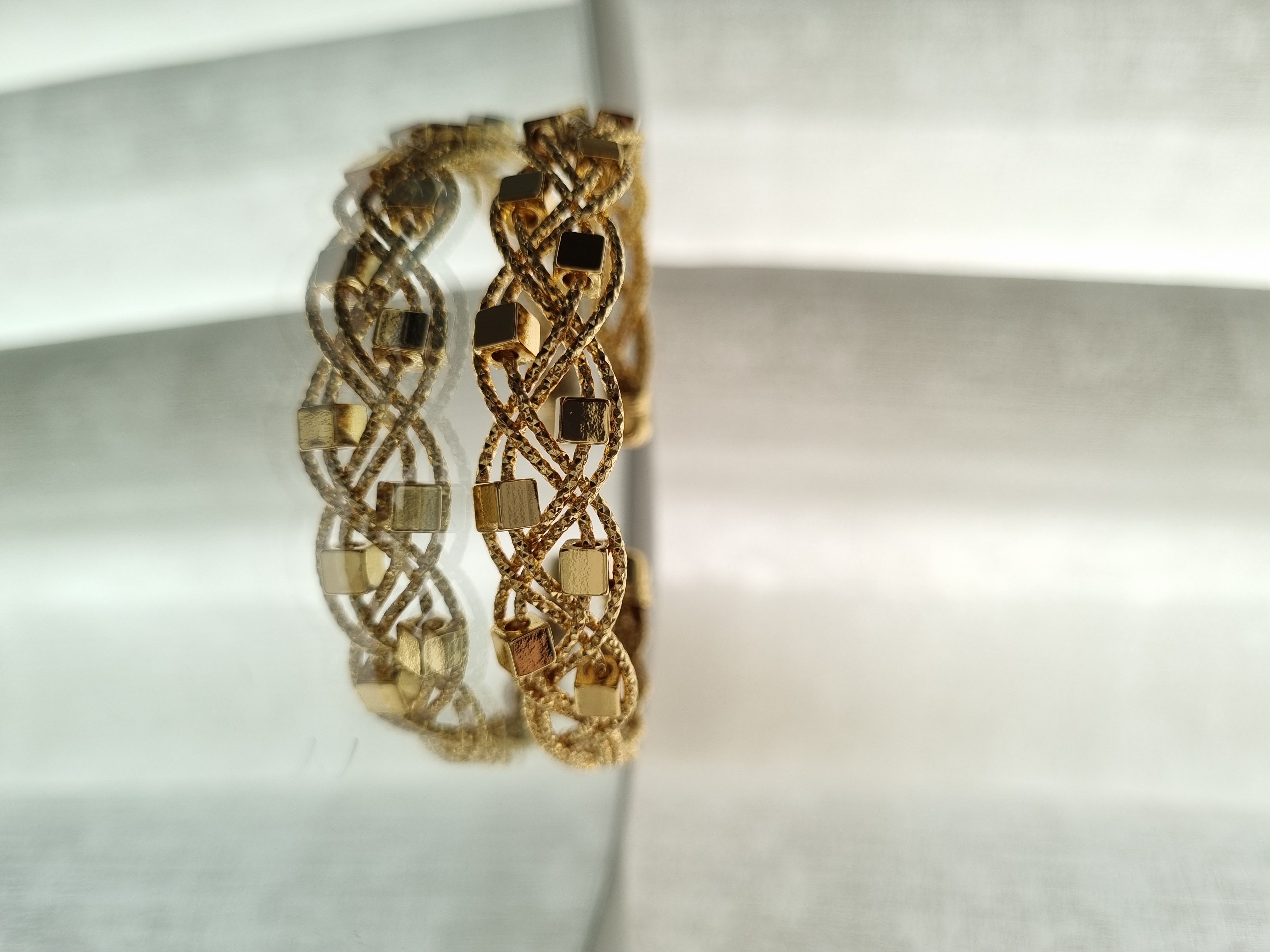 دستبند با بافت موجی و درخشش مکعب های طلایی